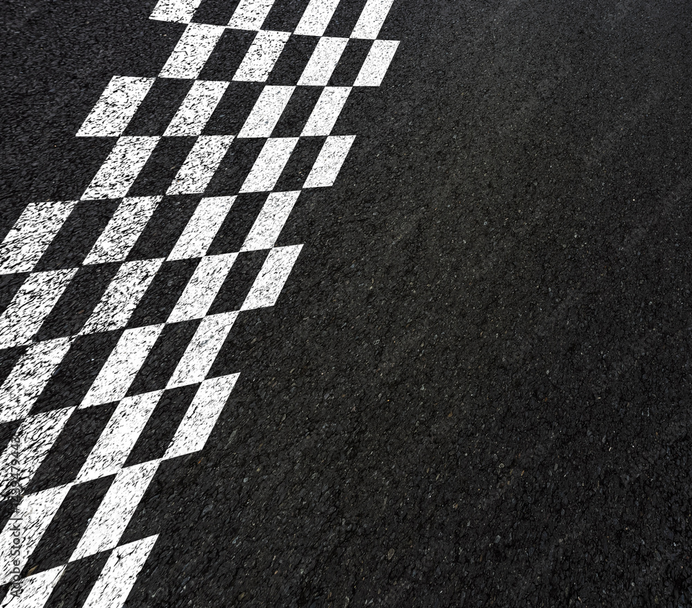Damier noir et blanc, marquage sur asphalte