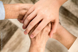 A young and mature woman's hands intertwined in a warm powerful gesture of shared success, support, teamwork, mutual understanding and cooperation. Helping hands across generations.