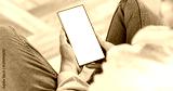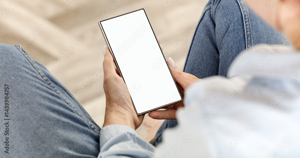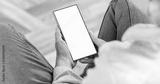Woman holding a mobile phone in one hand and credit card in the other and doing online shopping on her smartphone in warm cozy home. Copy space for text, advertising, app design or promotional mockup.