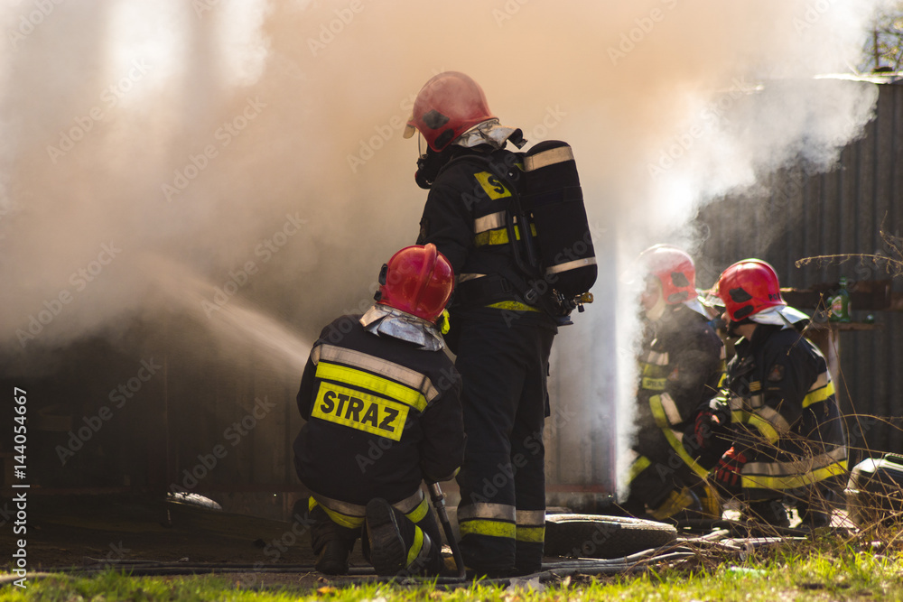 Fire garages, action fire extinguishing by the service: fire brigade and Police