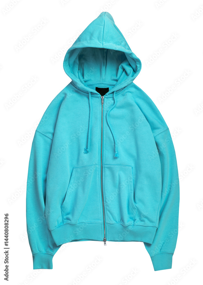 Blue hoodie, hoded jacket, sport style jumper,pullover isolated on white.Longsleeve.