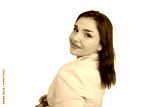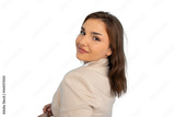 Smiling businesswoman turning back on transparent background, looking confident and assertive