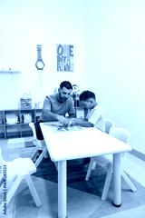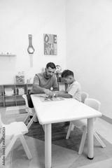 Father And Son Bonding Over A Puzzle Game, Building Focus And Patience Together