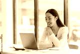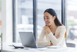 Young, happy professional working on a new project while using a laptop in a bright, modern office filled with natural light