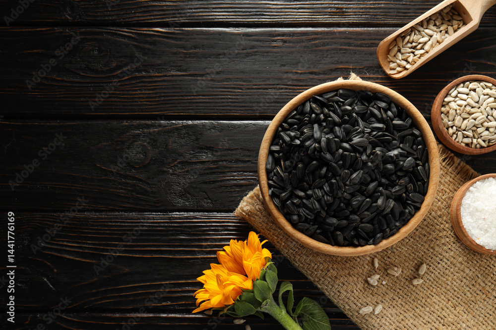 Sunflower seeds, concept of tasty snack, concept of harvest