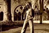 Summer fashion street style with young fashionable woman in red jacket, sunglasses and jeans in the city on a sunny summer day. Denim fashion.