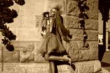 Beautiful, shapely woman in elegant luxury evening dress sensually walks around the city on a sunny summer day. Luxury summer fashion