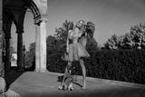 Beautiful, shapely woman in elegant luxury evening dress sensually walks around the city on a sunny summer day. Luxury summer fashion