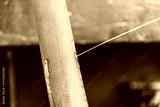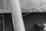 Close-up of a pressurized fire hose with water spraying through a visible rupture, highlighting the need for urgent replacement to ensure shipboard safety.