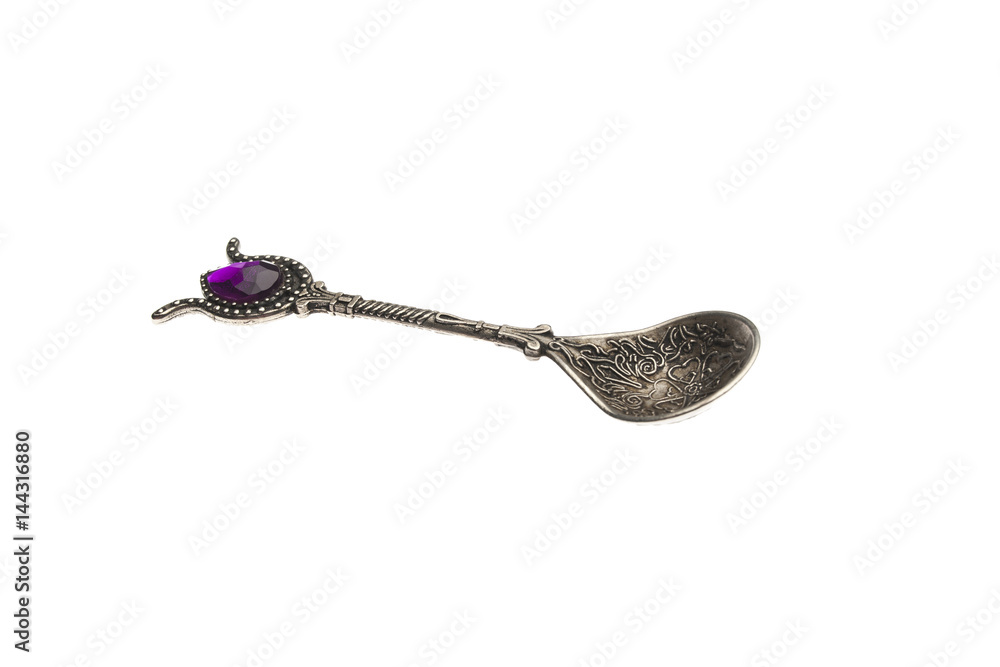 Spoon engraved, from silver and precious stone, table cutlery, for tea ceremony