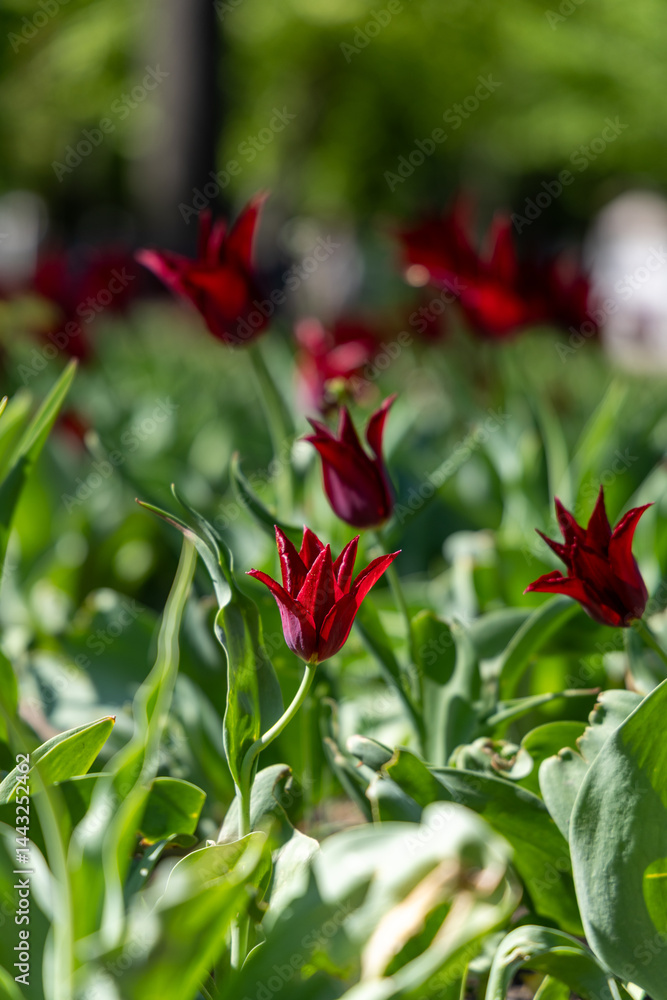 Red tulips in the spring garden