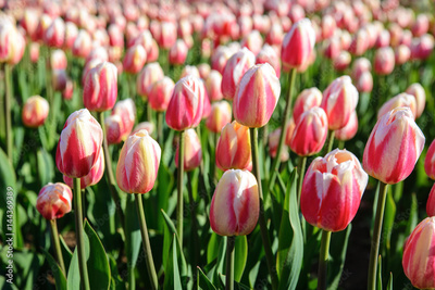 Flower tulips background. Beautiful view of pink tulips under sunlight landscape in spring