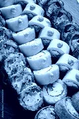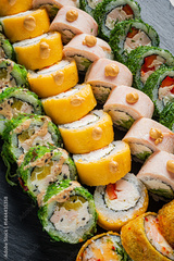 A variety of fresh sushi rolls, beautifully arranged for a delightful experience