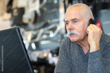 senior man using mobile phone while looking documents