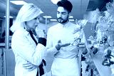 salesman buying praline chocolates