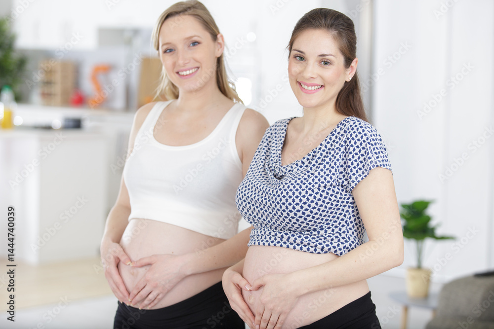 two pregnant women holding hands on the tummy