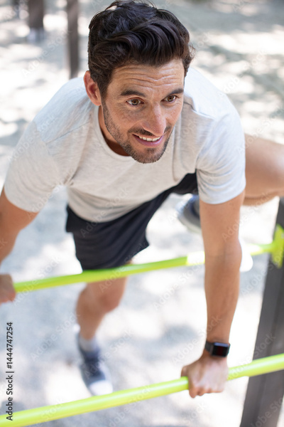 man doing exercise gym outdoor bars