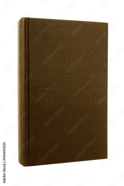 Bible or plain dark brown or black book or textbook front cover one single standing upright vertical isolated on white background photo