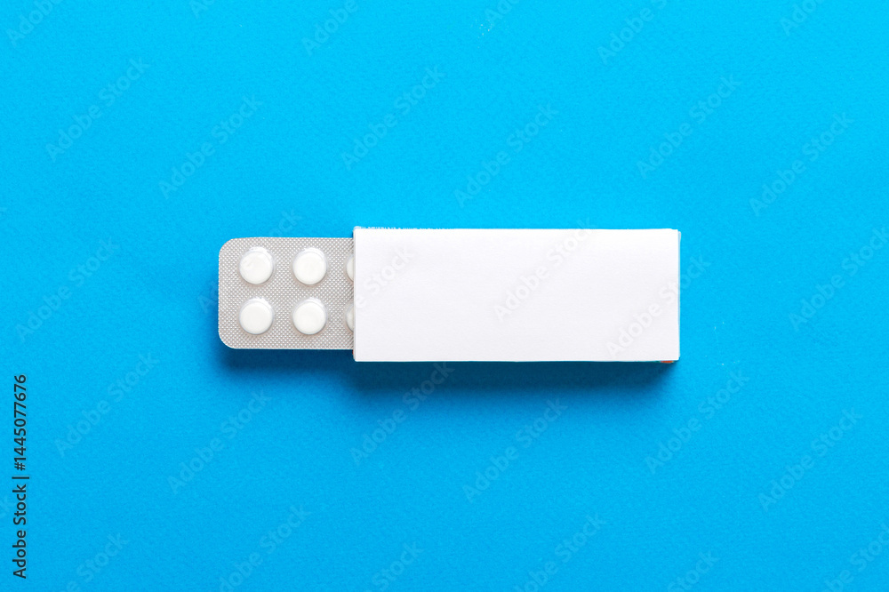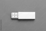 Blank White Product Package Box Mock-up. Open blank medicine drug box with blister top view