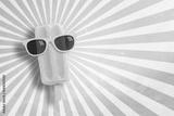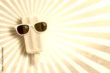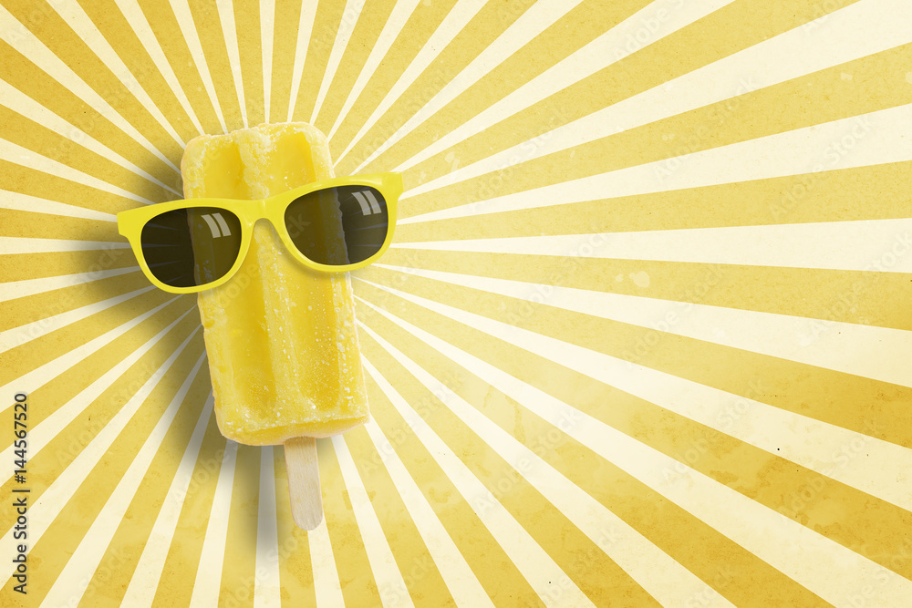 Ice cream stick wearing sunglasses on vintage background with copy space., Yellow Pastel tone.