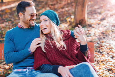 Romantic couple enjoying in the park. Love and tenderness. Lifestyle concept