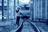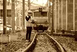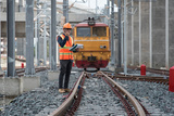 Engineer Inspecting Railway Track During Construction