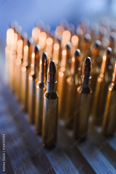 Brass metal bullet cartridge close-up 7.62 gauge caliber