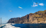 Amazing view of high cliffs from the boat. Location: Los Gigantes, Tenerife, Canary Islands. Artistic picture. Beauty world.