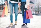 Shopping time. Young couple in shopping. Consumerism, fashion, lifestyle concept