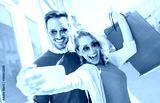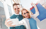 Beautiful young couple enjoying in shopping. Consumerism, fashion, lifestyle concept