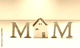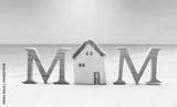 Mother's day card background idea, M wooden font with miniature house on tropical beach background, gift for mom