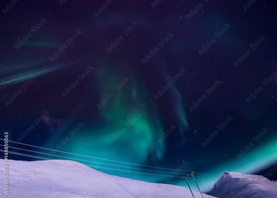 The polar Northern lights in the mountains of Svalbard, Longyearbyen, Spitsbergen, Norway wallpaper