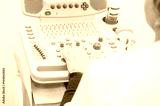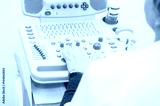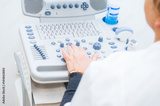 Adult woman doctor's hands close up preparing for an ultrasound device scan. Selective focus