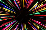 Colorful neon light lines on black background.