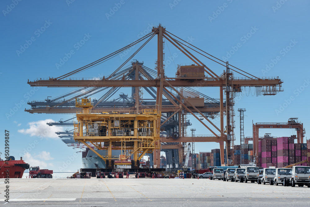containers ship cargo business commercial trade logistic and transportation of international import export by container freight cargo ship in the open seaport.
