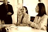 Asian businesspeople having a discussion during a meeting in the office, collaborating on a project