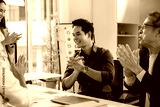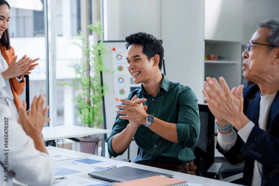 Business team clapping hands during a meeting, celebrating success and showing appreciation for a colleague's achievement