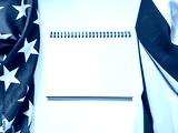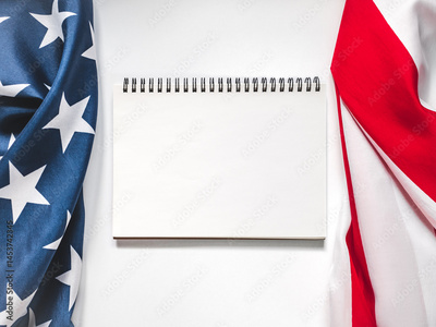 American Flag on white background and space for Your congratulatory inscription. Greeting card. Studio shot. Congratulations for family, loved ones, relatives, friends and colleagues