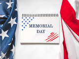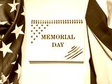 Memorial Day. American Flag and congratulatory inscription. No people. Closeup, top view. National holiday concept. Congratulations for family, relatives, friends and colleagues