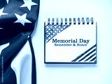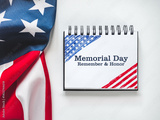 Memorial Day. American Flag and congratulatory inscription. No people. Closeup, top view. National holiday concept. Congratulations for family, relatives, friends and colleagues
