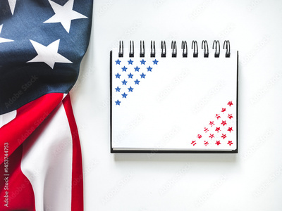 American Flag on white background and space for Your congratulatory inscription. Greeting card. Studio shot. Congratulations for family, loved ones, relatives, friends and colleagues