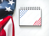 American Flag on white background and space for Your congratulatory inscription. Greeting card. Studio shot. Congratulations for family, loved ones, relatives, friends and colleagues