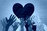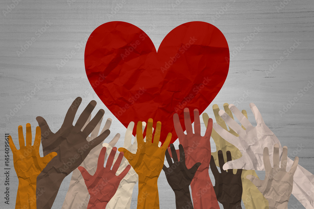 Hands making heart sign up over, Valentine's day, vector illustration.