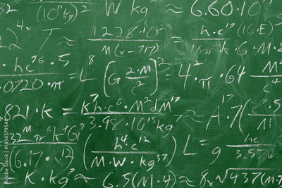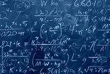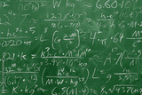 School chalk board is painted with different formulas and signs from the school curriculum. A green blackboard is drawn in chalk as a background. The concept of knowledge and learning. long banner.
