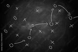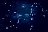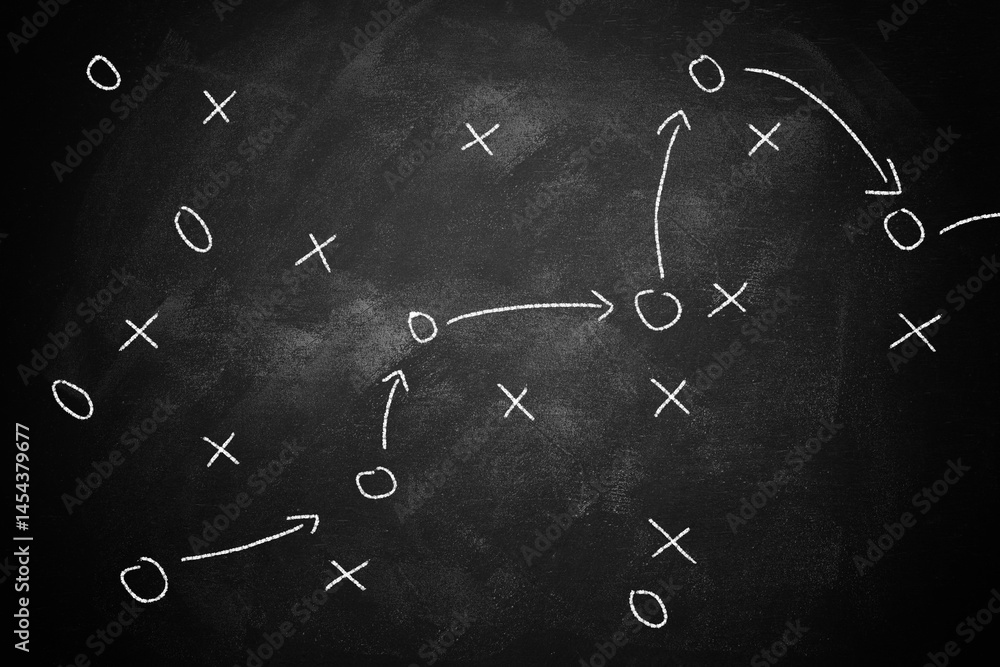 Soccer, football tactics isolated on black blackboard, chalkboard texture