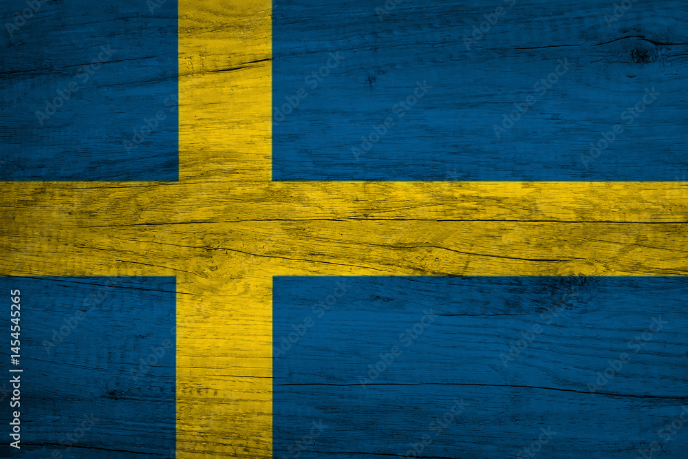 Sweden, swedish flag painted on old wood plank background. Sweden Independence Day June 6th.