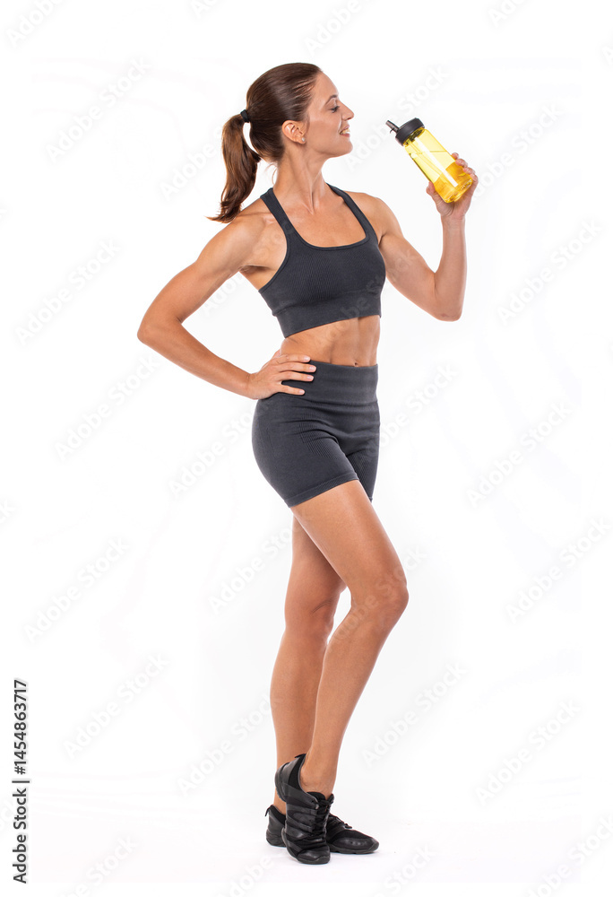 Fitness woman. Portrait of a young athletic brunette model