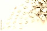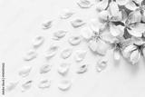 close up top view of light and soft petals of sakura on white background. Concept of love. feeling of spring. Flat lay. tenderness, fresh, love, spring concept.