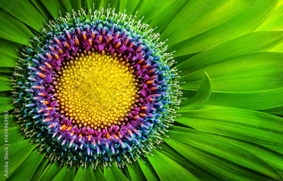Gerbera flower close up. Macro photography. Card green Gerbera Flower. Natural romantic conceptual floral Macro background.