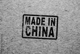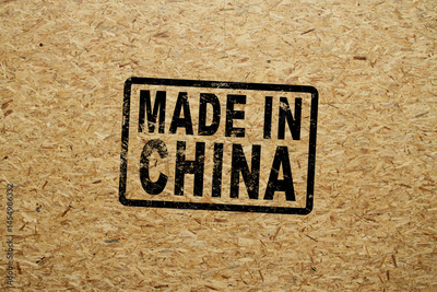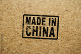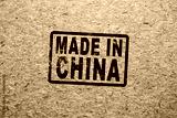 Made in China stamp printed on chip wooden box. Factory, manufacturing and production country concept.